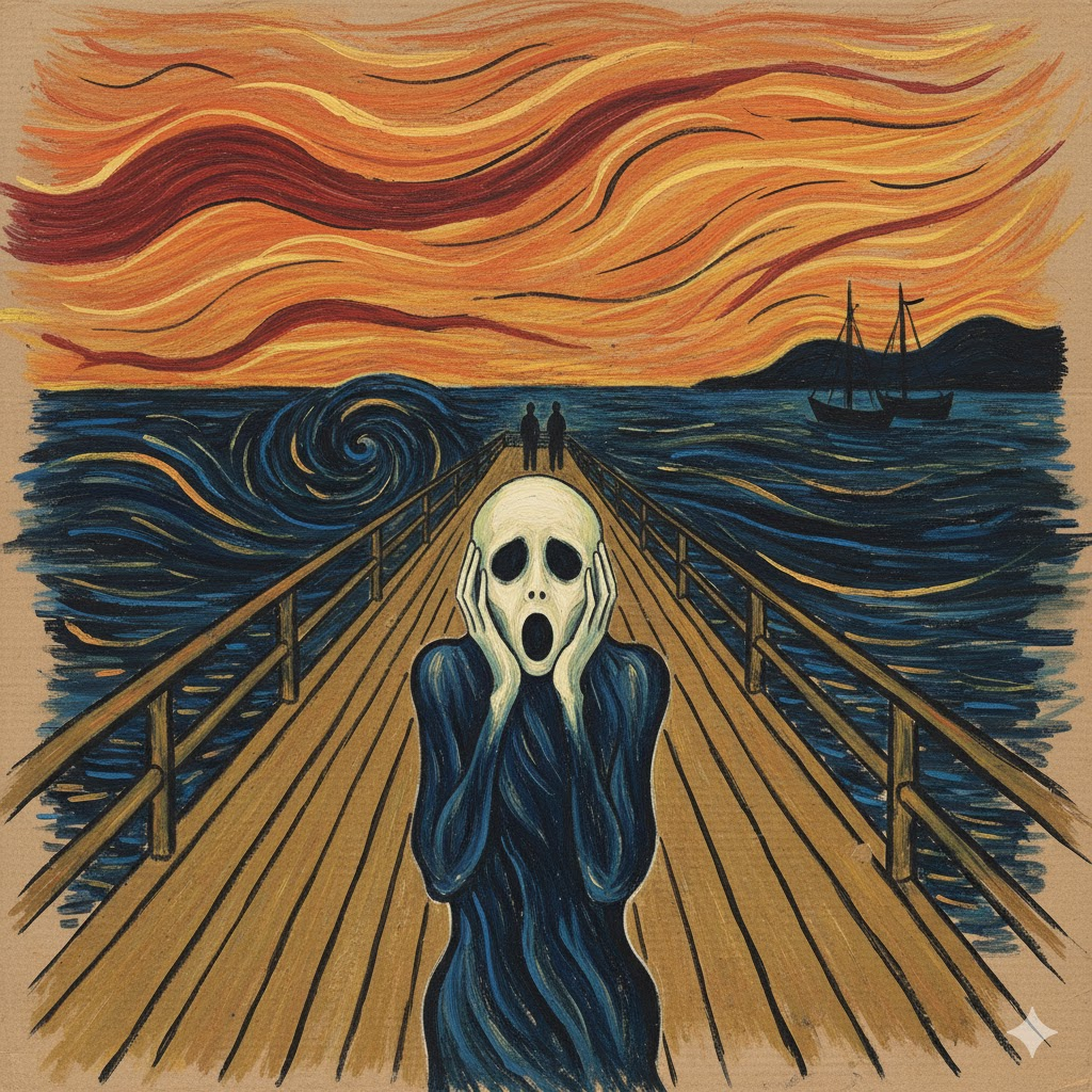 - Internalize the core emotion: anxiety. Imagine a moment of intense panic where the world around you seems to warp and vibrate with your own inner terror. This is the feeling you will translate into color and line.