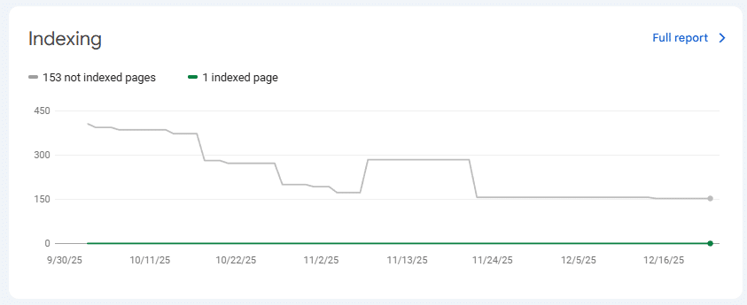 For reasons I cannot understand, Google has decided to only index this site’s home page: